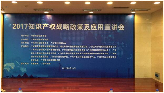 8月23日,“2017广东知识产权战略政策及应用宣讲会”在广州燕岭大厦开讲,本次宣讲会由广州市科学技术协会主办,广州市科技咨询中心和广东省专利协会承办主办、广州科粤专利商标代理有限公司作为第一支持单位参加了协办。