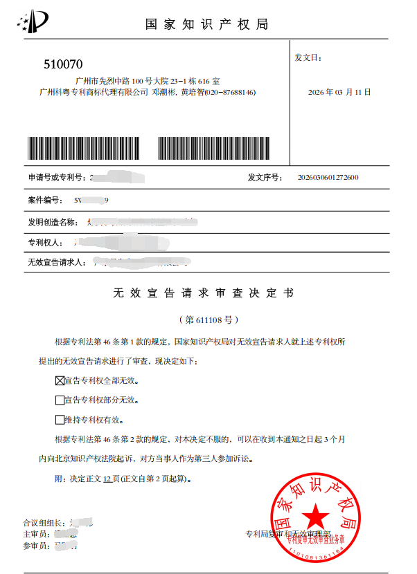 科粤公司凭借在专利侵权诉讼与无效宣告程序中的协同作战能力,为客户实现“诉讼驳回 + 专利无效”的双重胜果,充分体现了其在复杂专利纠纷中精准把握技术事实、灵活运用法律规则的综合专业素养。本案亦为同类专利侵权及无效案件的应对提供了具有典型意义的实践范例。